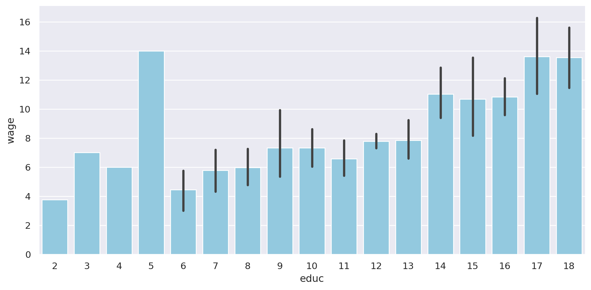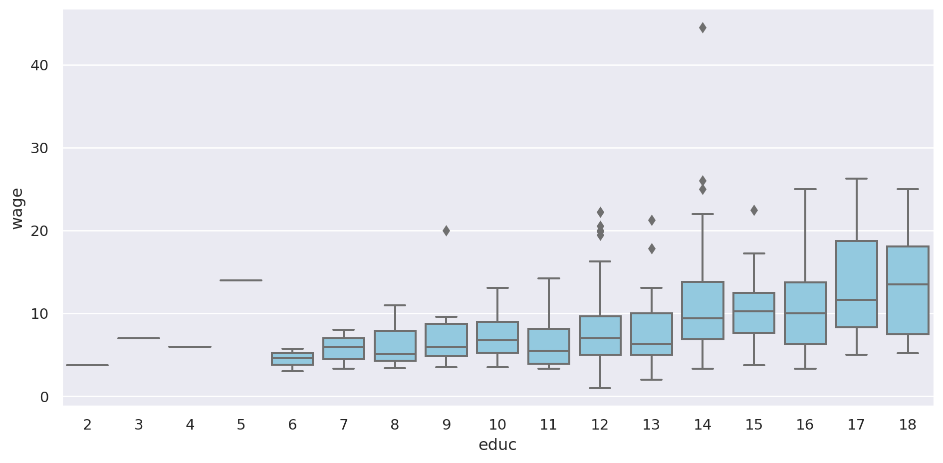 | wage | educ | race | sex | hispanic | south | married | exper | union | age | sector | |