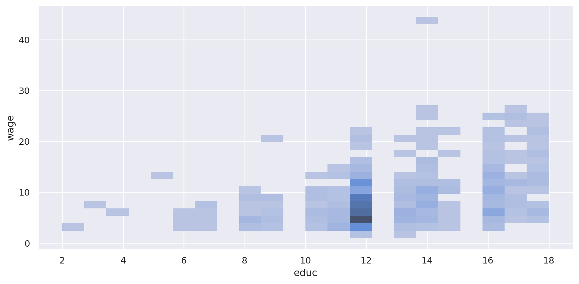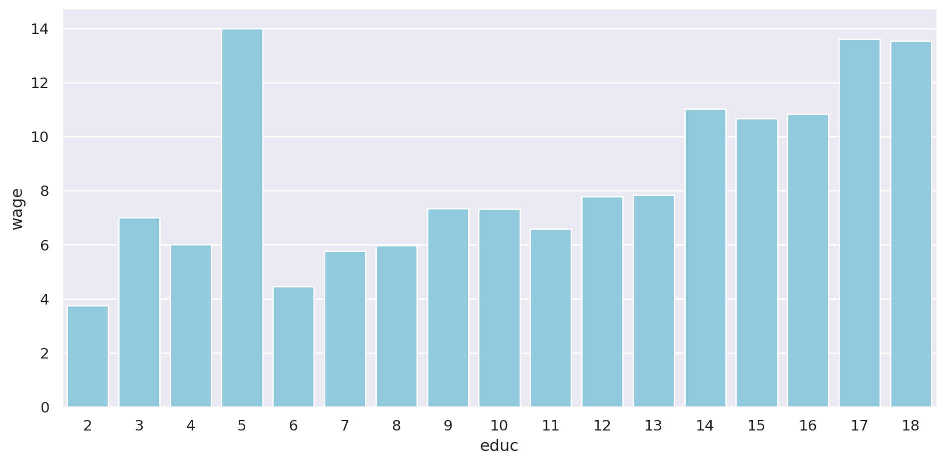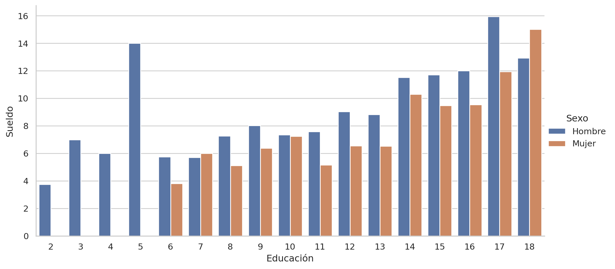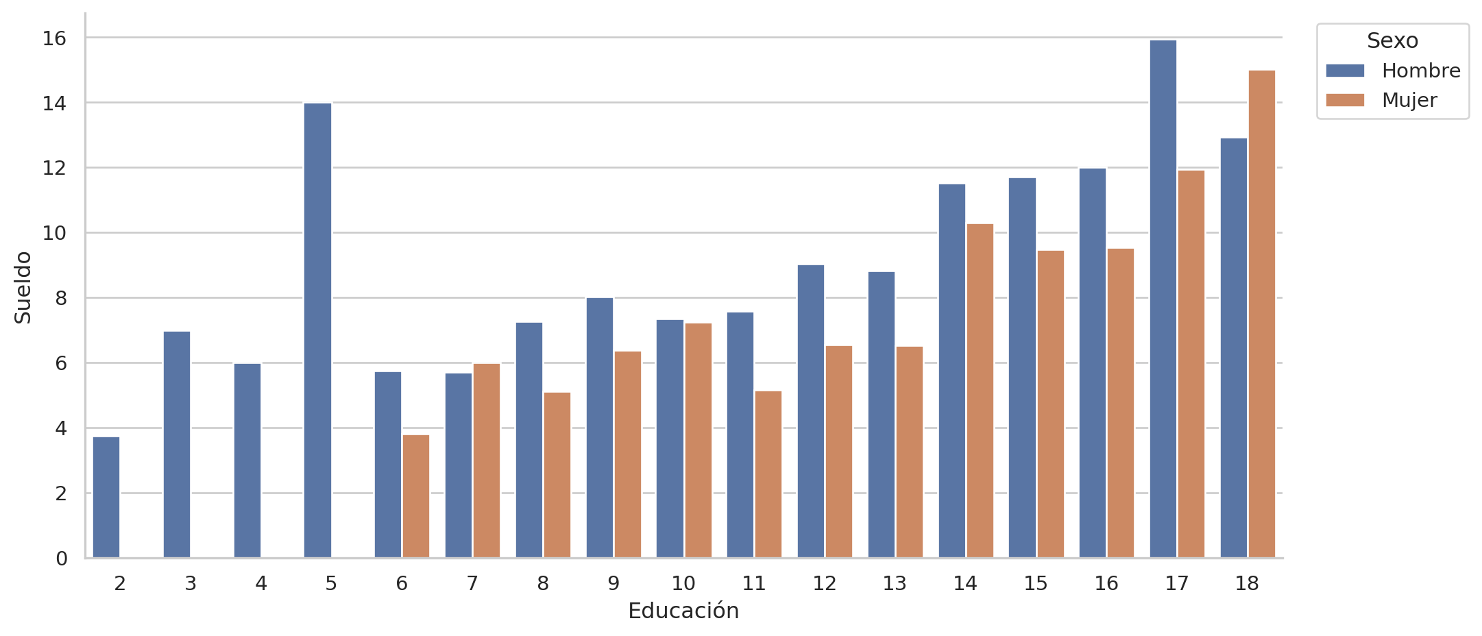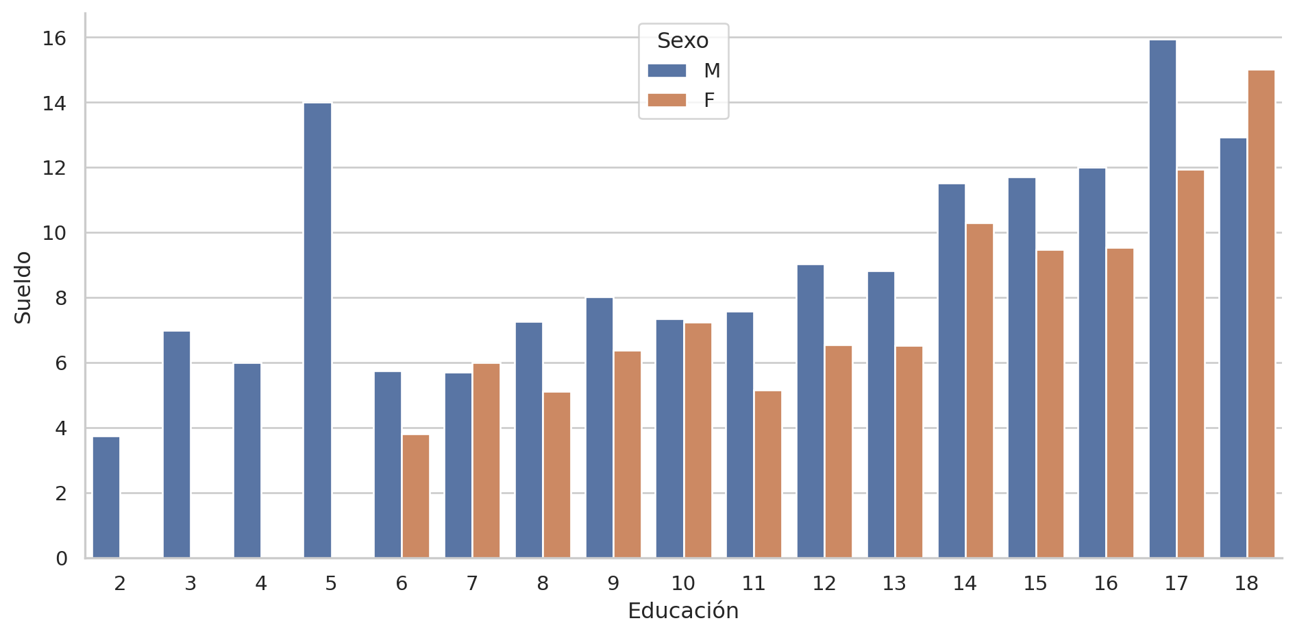 Un nivel educativo de 12 con sueldo inferior a 10 es común.
