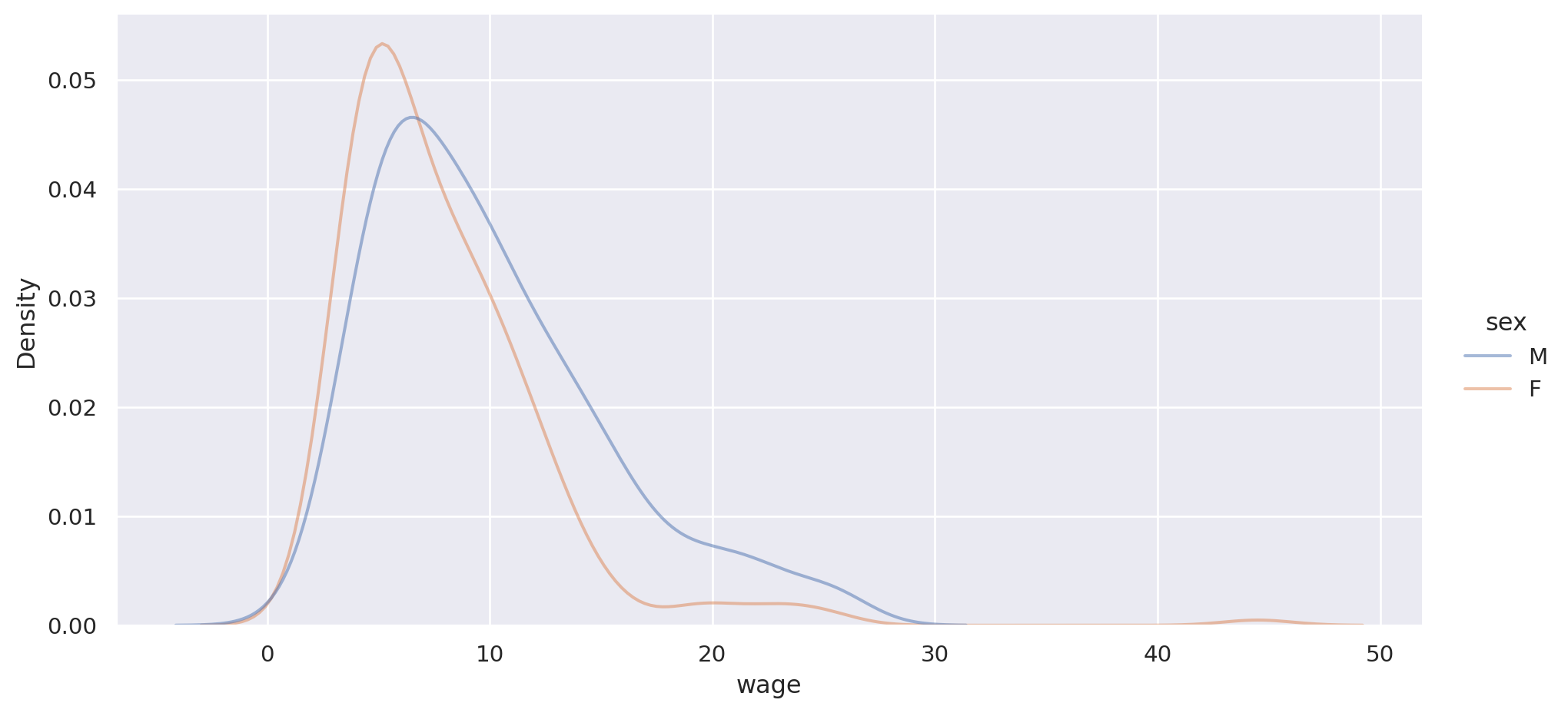 Mostrar un kde de la factura distinguiendo por sexo y separando por la hora.