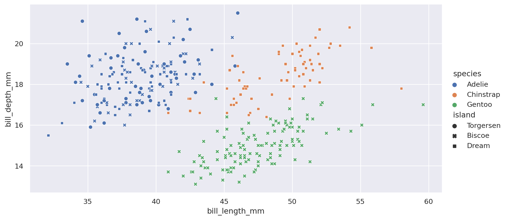 | species | island | bill_length_mm | bill_depth_mm | flipper_length_mm | body_mass_g | sex | |
